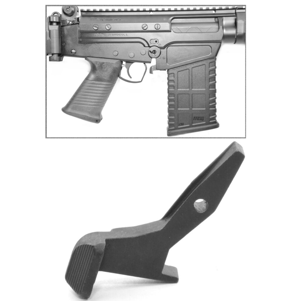 MATCH TRIGGER SET TRIGGER: This trigger was developed by DS Arms and will give the rifle a 2.5-3 lb trigger pull. This trigger option uses a reduction button that is installed into a SAW grip (only). This is an excellent option for a FAL rifle that is going to be primarily used in a stable position, like off a bench or bi pod.