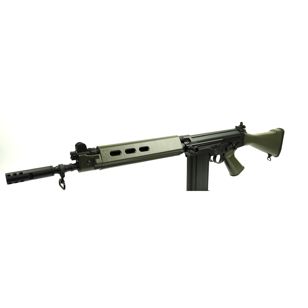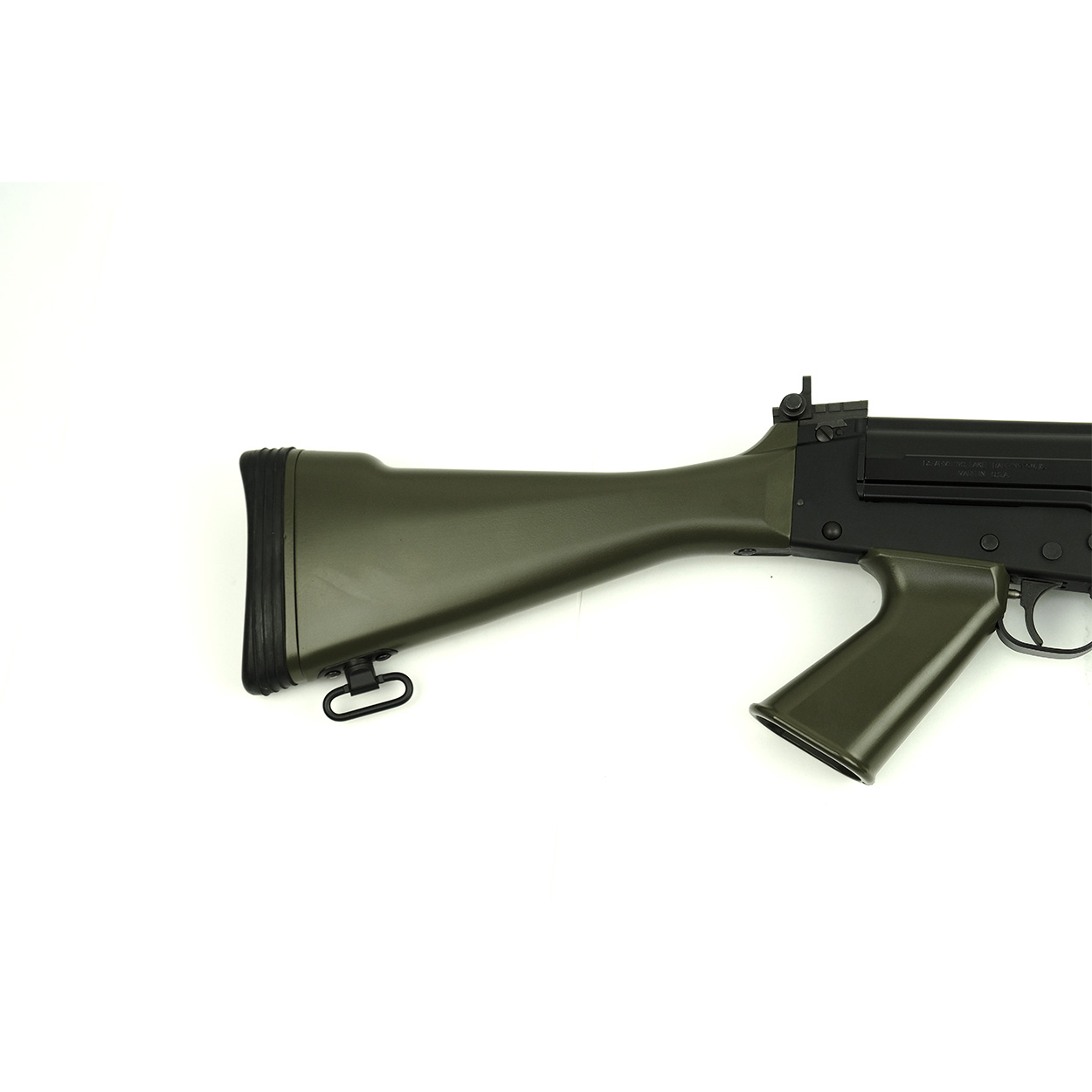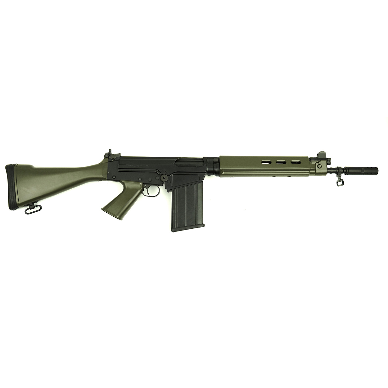 This classic FAL rifle features a Matte Black DuraCoat finish on the steel & aluminum and OD Green DuraCoat furniture; Pistol Grip, Full Length Belgian Style Handguards and Humpback Stock.