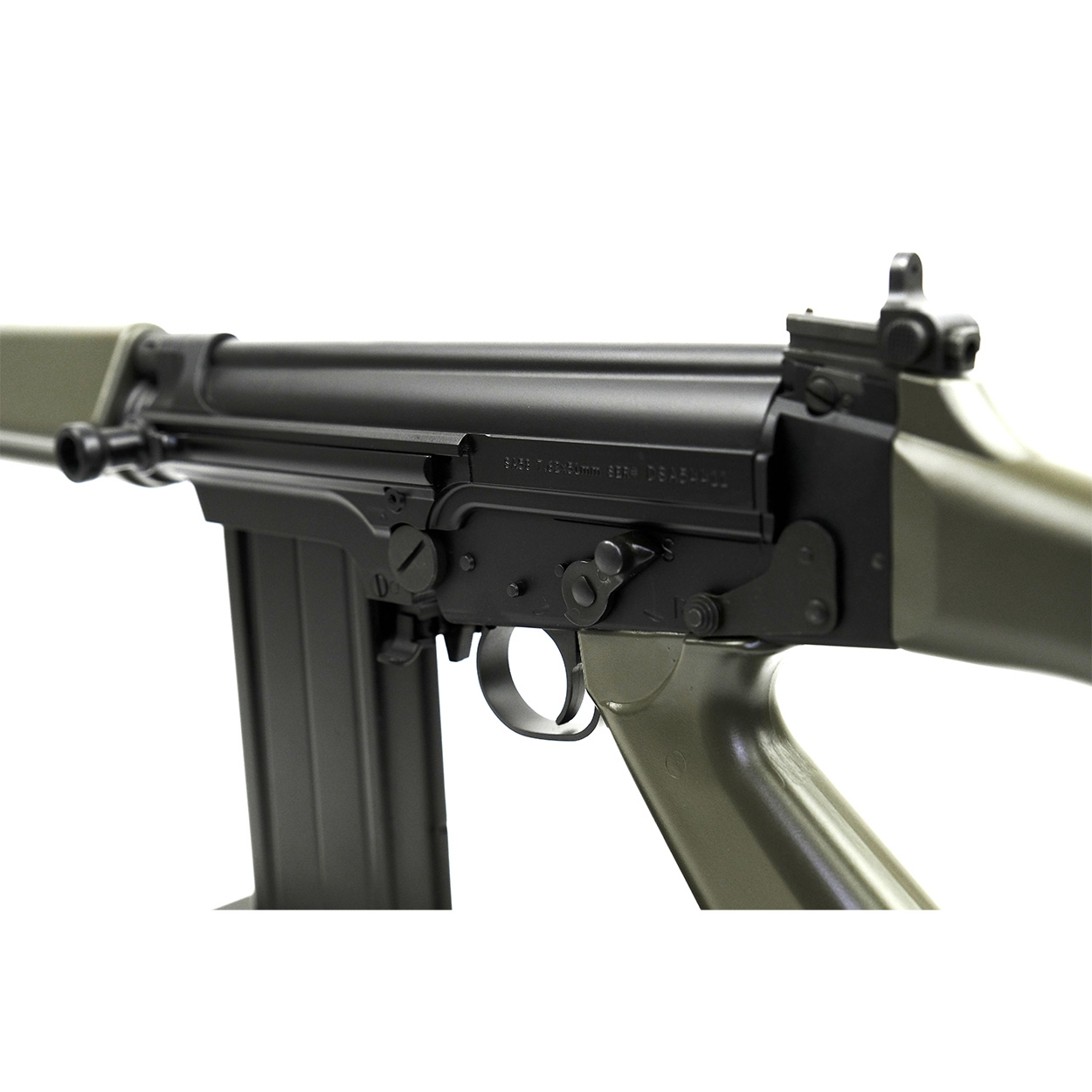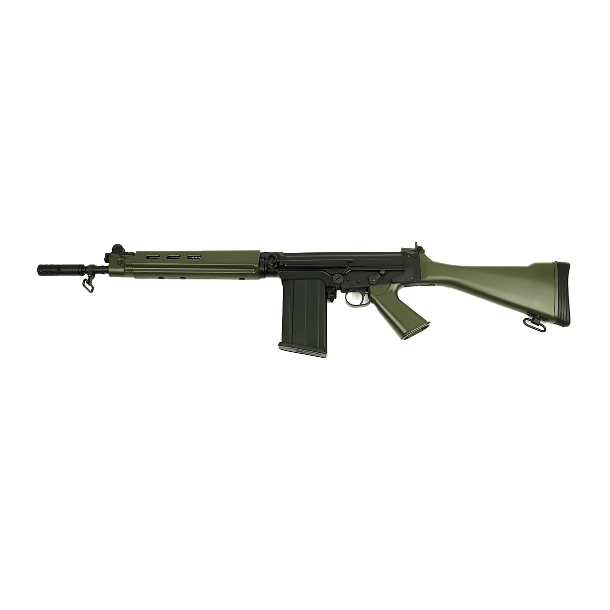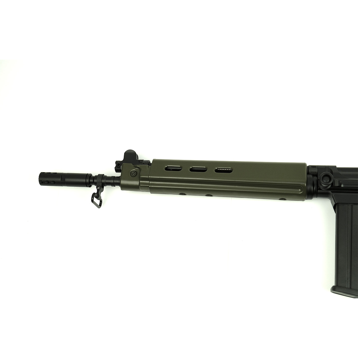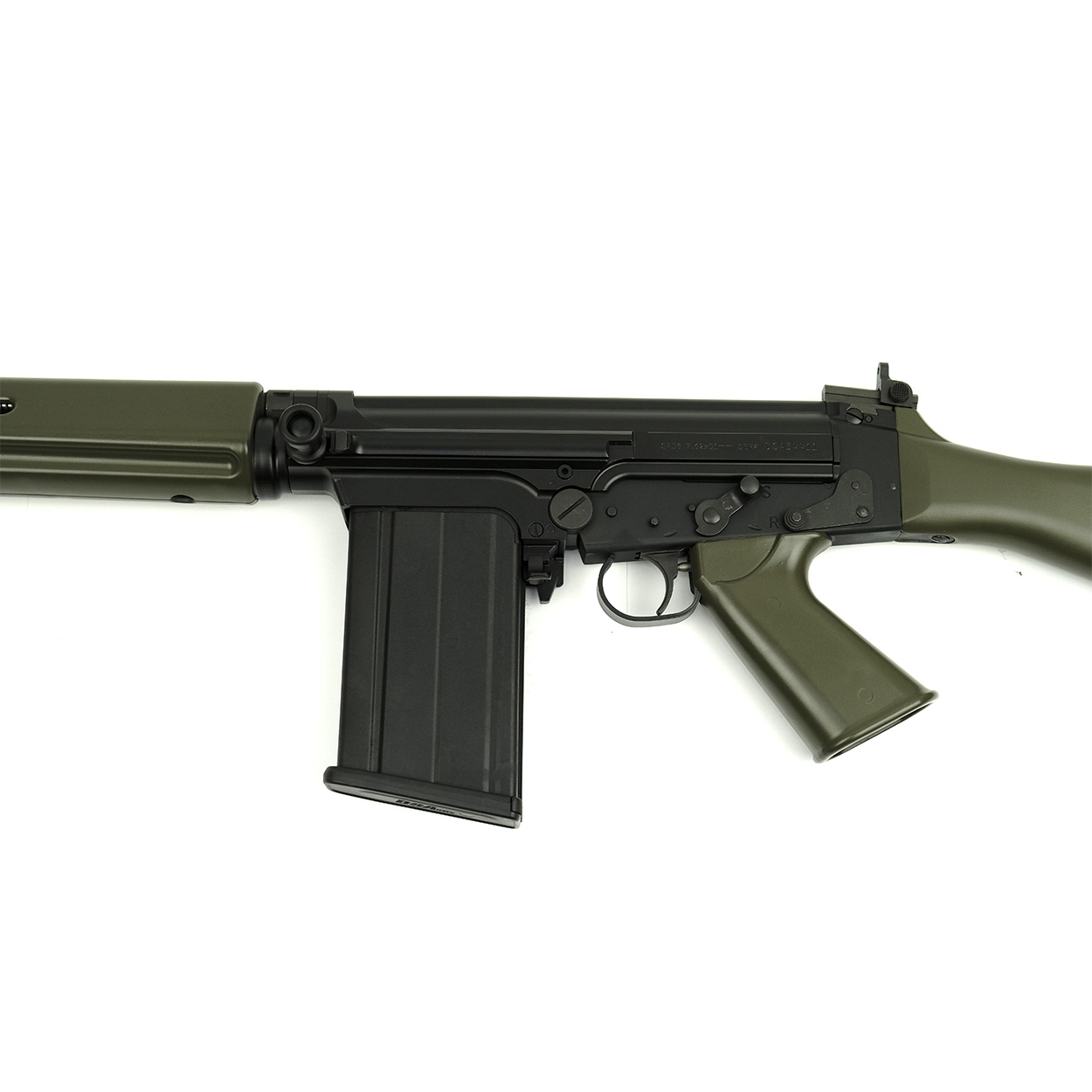 This classic FAL rifle features a Matte Black DuraCoat finish on the steel & aluminum and OD Green DuraCoat furniture; Pistol Grip, Full Length Belgian Style Handguards and Humpback Stock.