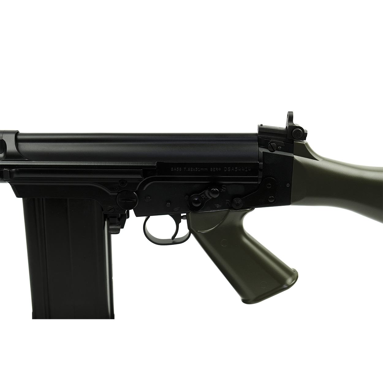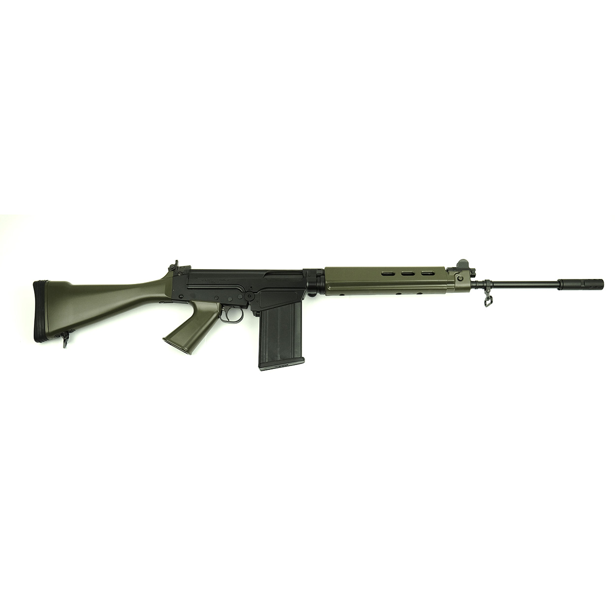 This classic FAL rifle features a Matte Black DuraCoat finish on the steel & aluminum and OD Green DuraCoat furniture; Pistol Grip, Full Length Belgian Style Handguards and Humpback Stock.