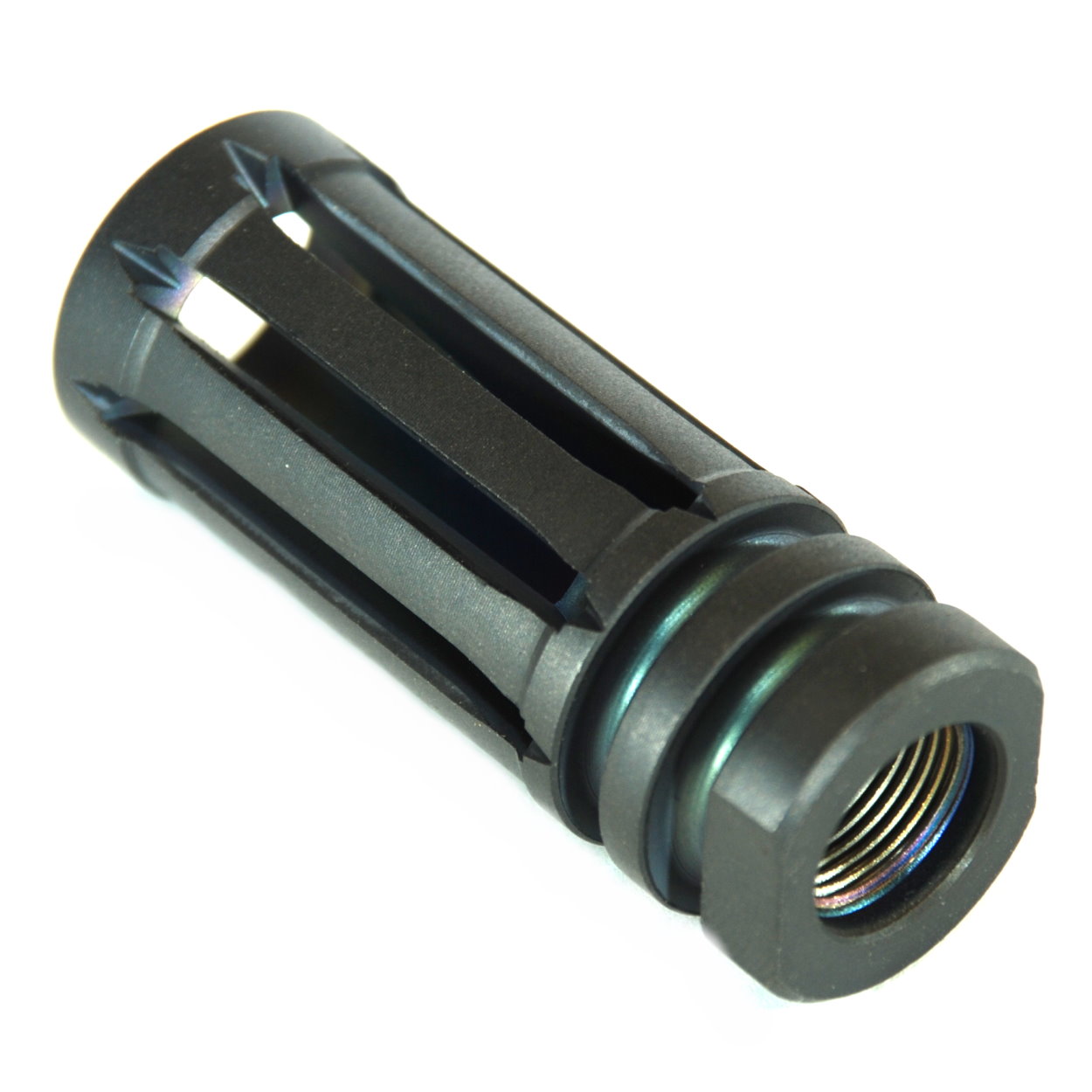 DSA AR15 Titanium Enhanced Bird Cage Long Flash Hider – 1/2×28 – Black Finish