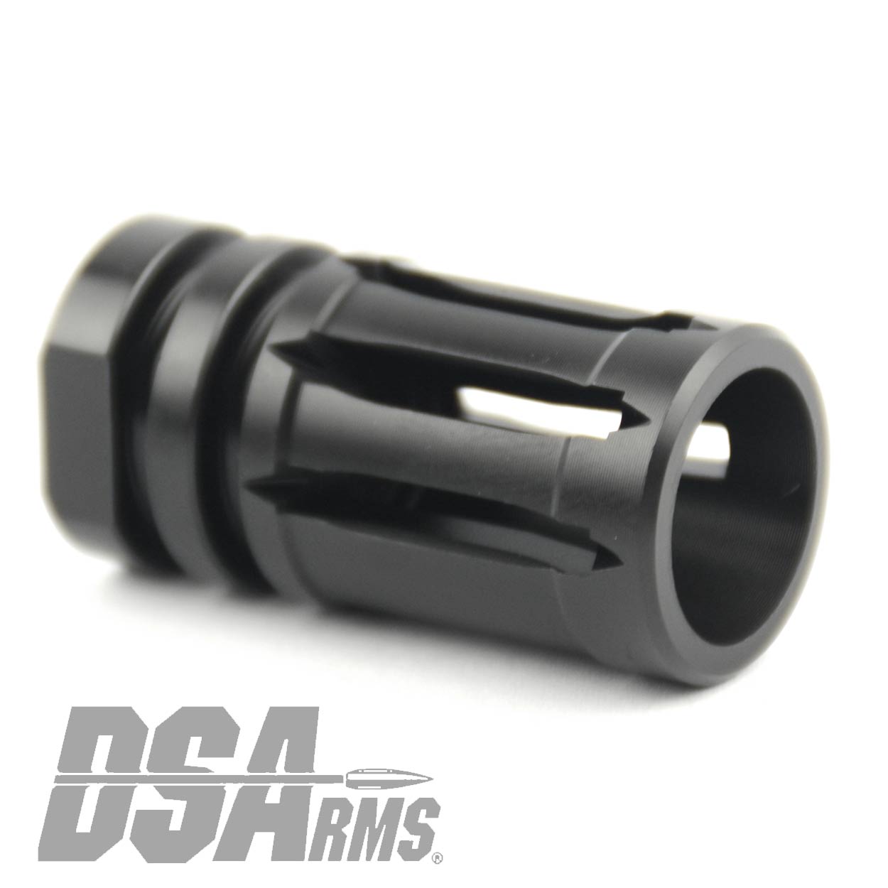 DSA AR15 Titanium Enhanced Bird Cage Short Flash Hider – 1/2×28 – Black Finish