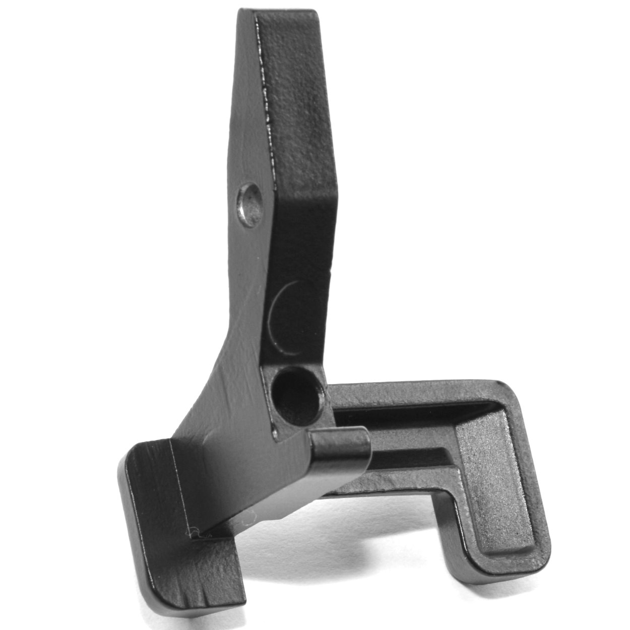 Left handed shooter. Right side of the lever is pretty ridged like the stock chunk of steel, the left has a little flex and the whole unit feels lighter than the stock. Time will tell its durability.