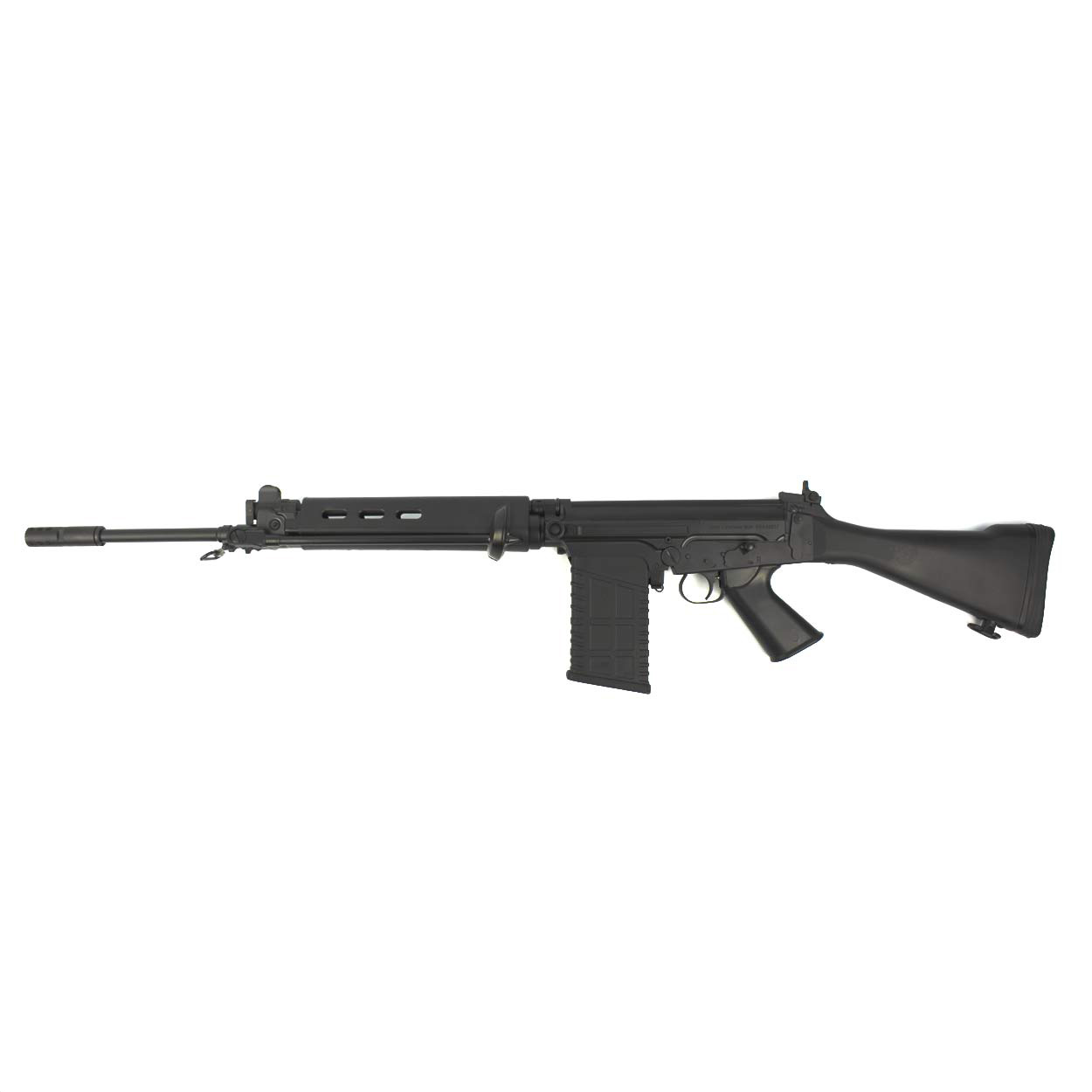 This classic FAL rifle configuration features a Belgian style carry handle installed into the receiver and the DSA folding light bipod with QD mounting bracket installed on the barrel. This classic FAL is a great addition to any firearms collection.