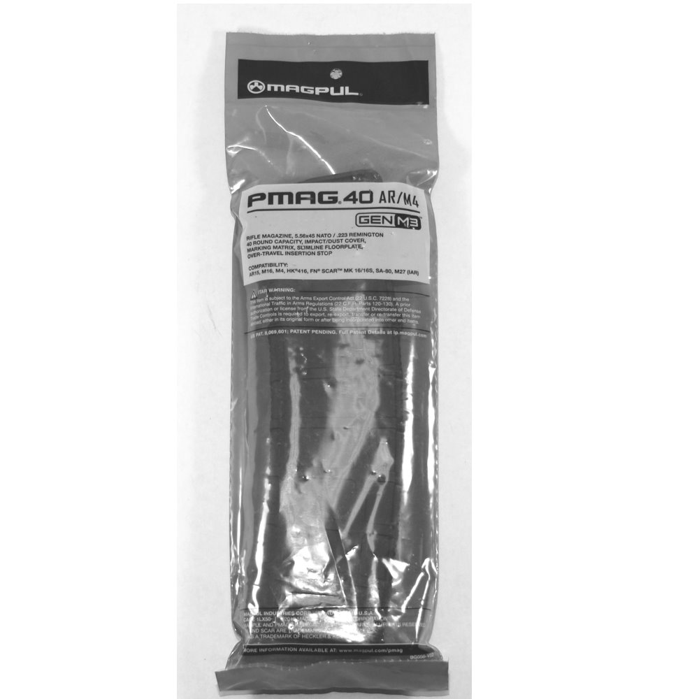 The next-generation PMAG 40 GEN M3 is a 40-round 5.56×45 NATO (.223 Remington) polymer magazine for AR15/M4 compatible weapons. Along with expanded feature set and compatibility, the GEN M3 incorporates new material technology and manufacturing processes for enhanced strength, durability, and reliability to exceed rigorous military performance specifications.
